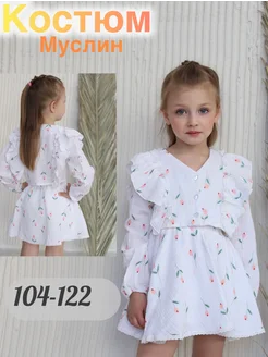 Костюм из муслина в садик юбка шорты и рубашка
