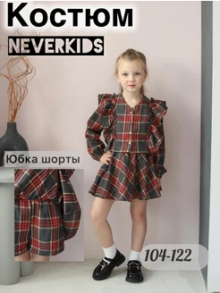 Костюм в клетку в садик юбка шорты и рубашка