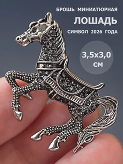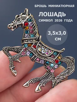 Брошь бегущая лошадь со стразами. Значок. Символ года 2026