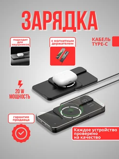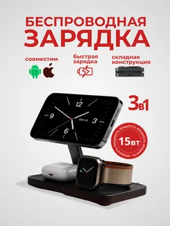 Беспроводная зарядка 3 в 1 складная для Айфон и Андроид