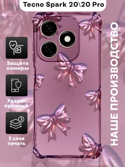 Чехол на Tecno Spark 20 с принтом новогодний бантики