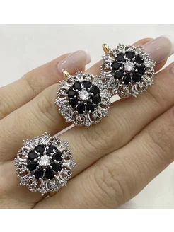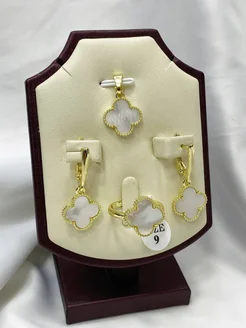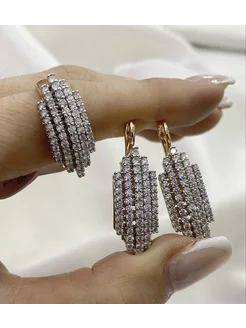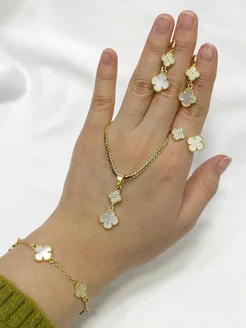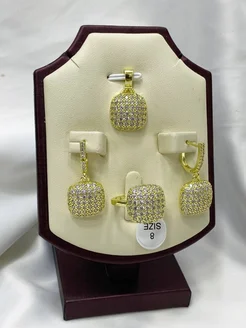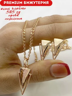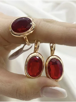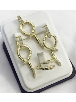 Комплект серьги, кольцо и кулон бижутерии под золото