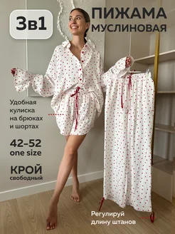 Пижама муслиновая 3 в 1 с рубашкой брюками и шортами