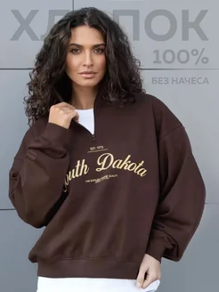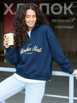 Свитшот полузамок женский оверсайз с принтом укороченный