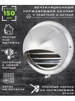Вентиляционный колпак с сеткой и фланцем 150 мм