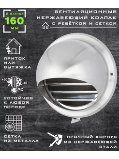 Вентиляционный колпак с сеткой и фланцем 160 мм