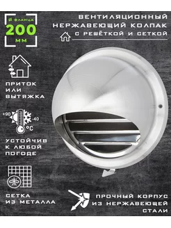 Вентиляционный колпак с сеткой и фланцем 200 мм