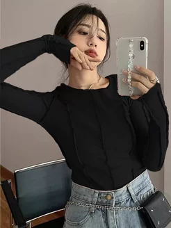 Укороченный лонгслив с длинным рукавом клеш кроп топ