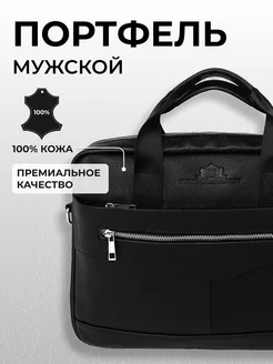 Портфель кожаный деловой для документов и ноутбука с ручками