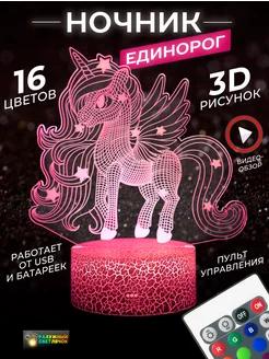 Ночник детский светильник 3Д лампа ЕДИНОРОГ 3D