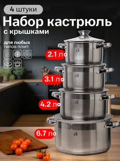 Набор кастрюль из нержавейки с крышками