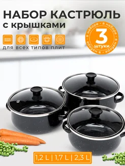 Чёрный набор эмалированных кастрюль с крышками