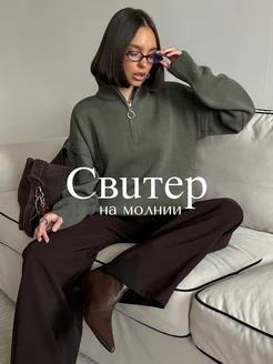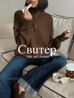 Свитер на молнии с горлом вязаный