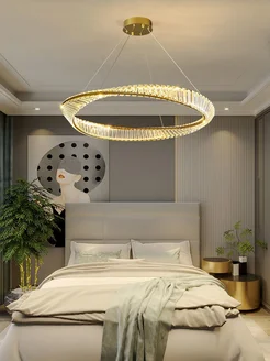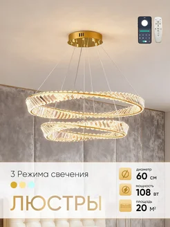 Люстра хрусталь подвесная для зала кольца 2 кольца с пультом
