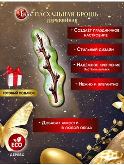 Брошь "Верба" зеленая