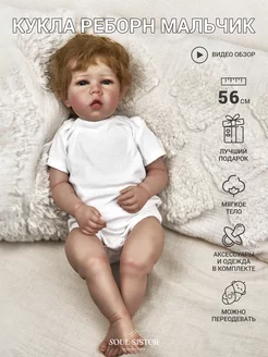 Кукла reborn мальчик 56 см пупс мягконабивной