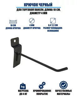 Крючок черный для торговой панели, длина 10 см, диаметр 4 мм