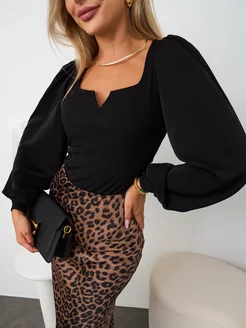 Блузка черная с рукавом фонарик