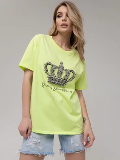 Футболка с принтом из страз оверсайз корона
