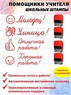 №45 Штампы оценки для учителя. Комплект 4 шт