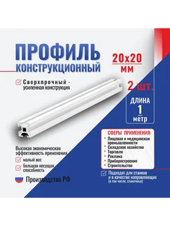 Профиль конструкционный 20x20 T-паз 1 метр 2 шт