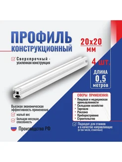 Профиль конструкционный 20x20 T-паз 0,5 метра 4 шт