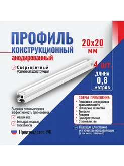Профиль конструкционный 20x20 T-паз 0,8 метра 4 шт