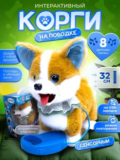 Интерактивная музыкальная собака щенок корги на поводке