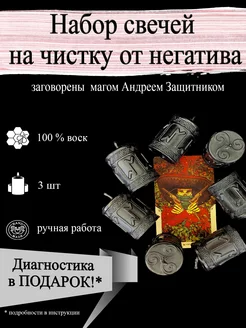 Набор магических свечей "Для чистки от негатива и порчи"3 шт