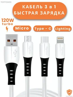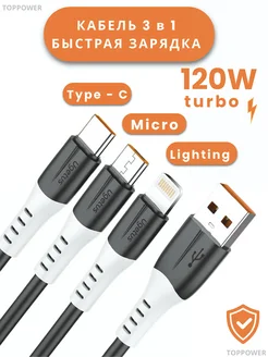 Кабель для быстрой зарядки 3 в 1 type-c, lightning, micro
