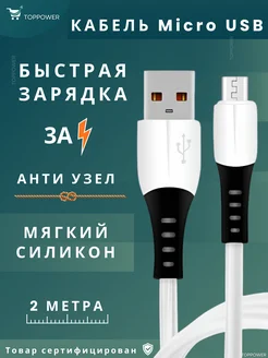 Кабель Micro USB быстрая зарядка 3А 2 метра