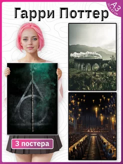 Гарри Поттер постер на стену 3 штуки Хогвартс