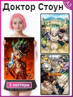 Доктор стоун манга постеры набор из 3 штук Dr Stone