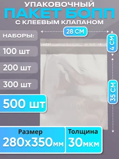 Упаковочные БОПП пакеты с клеевым клапаном 28х35 см, 500 шт
