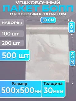Упаковочные БОПП пакеты с клеевым клапаном 50х50 см, 500 шт