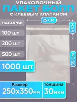 Упаковочные БОПП пакеты с клеевым клапаном 25х35 см, 1000 шт