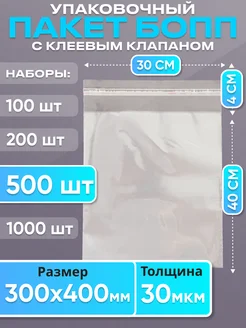 Упаковочные БОПП пакеты с клеевым клапаном 30х40 см, 500 шт