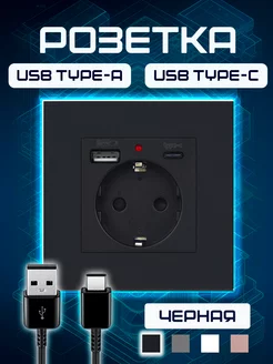 Розетка с usb и type-c черная встраиваемая