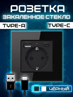 Стеклянная Розетка с usb и type-c встраиваемая