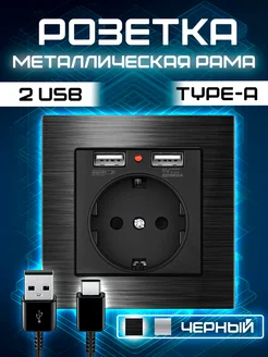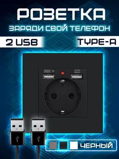 Розетка с usb черная встраиваемая