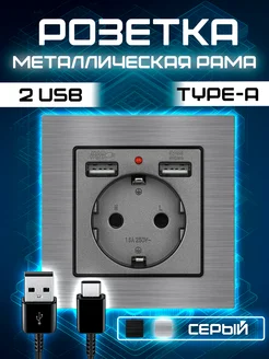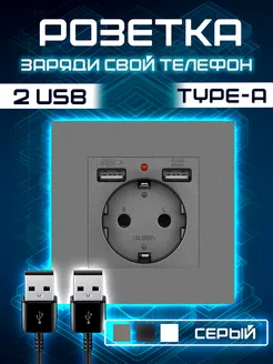 Встраиваемая розетка с usb серая