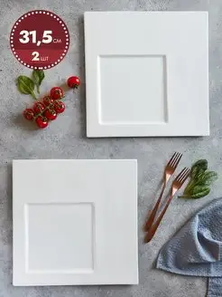 Тарелки квадратные обеденные с бортиками из фарфора 2 шт