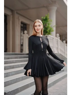 Праздничное мини-платье с завязками и расклёшенной юбкой