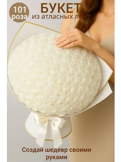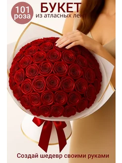 Букет из атласных роз 101 шт, набор с клеевым пистолетом