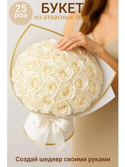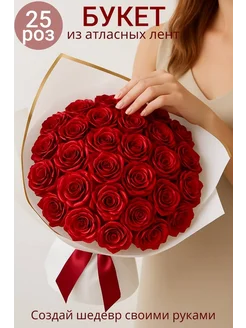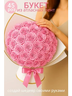 Букет из атласных роз 45 шт, набор с клеевым пистолетом