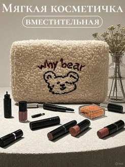 Косметичка мягкая плюшевая женская для косметики