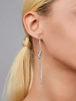 Длинные серьги пусеты с фианитами