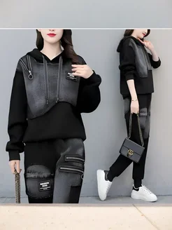 Костюм спортивный с капюшоном с джинсовыми вставками