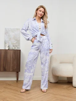 Брючный костюм оверсайз с рубашкой в пижамном стиле