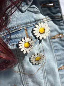 Деревянные броши, пин, значок ромашка